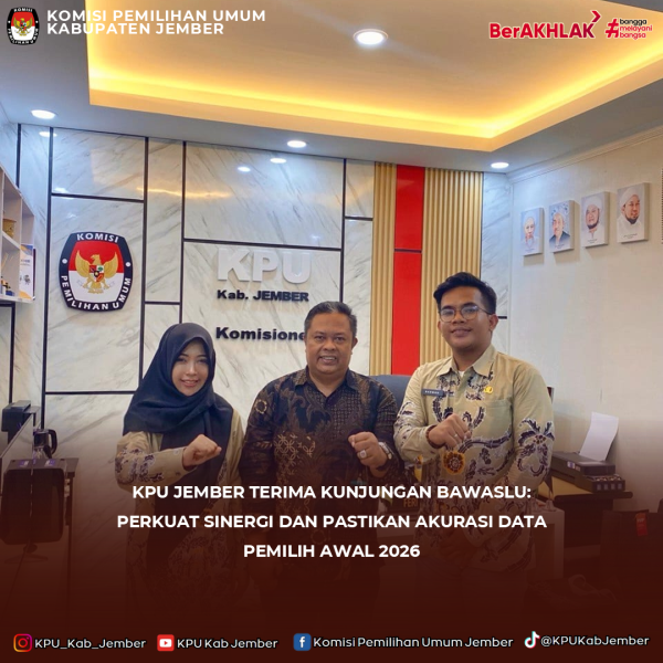 Jember, kab-jember.kpu.go.id – Komisi Pemilihan Umum (KPU) Kabupaten Jember menerima kunjungan koordinasi intensif dari Badan Pengawas Pemilihan Umum (Bawaslu) Kabupaten Jember di Kantor KPU Jember pada Kamis (19/02). Pertemuan strategis ini dilaksanakan untuk menyelaraskan langkah pengawasan serta memastikan akurasi data pemilih di awal tahun 2026. Mewakili KPU Jember, Bapak Feri Agus Rudianto selaku Komisioner Divisi Perencanaan, Data, dan Informasi, menyambut baik kehadiran pihak pengawas. Dalam pertemuan tersebut, terdapat tiga poin krusial yang menjadi fokus pembahasan bersama. Pertama, mengenai kendala distribusi data pemilih dari pusat yang belum sepenuhnya diterima oleh KPU di tingkat Kabupaten/Kota. Hal ini menjadi perhatian serius karena berpotensi menghambat proses pemutakhiran data di lapangan. "Kami berkomitmen memastikan aliran data berjalan lancar. Masukan dari Bawaslu terkait percepatan distribusi data dari pusat sangat penting agar akurasi daftar pemilih tidak terancam," ujar Feri Agus Rudianto. Poin kedua menekankan pada penguatan koordinasi dengan para pemangku kepentingan (stakeholder). KPU Jember akan mengintensifkan sinergi aktif dengan Dinas Kependudukan dan Pencatatan Sipil (Dispendukcapil) untuk sinkronisasi data kematian dan pindah domisili, serta berkoordinasi dengan TNI/Polri terkait pemutakhiran status keanggotaan. Langkah ini diambil agar KPU didukung oleh data primer yang valid dari instansi penyedia data kependudukan hingga tingkat desa/kelurahan. Terakhir, memasuki pertengahan Februari, kedua lembaga mulai mematangkan persiapan Rekapitulasi Daftar Pemilih Berkelanjutan (DPB) Triwulan I Tahun 2026. KPU Jember berkomitmen untuk menjaga transparansi dalam menyajikan progres data sebelum rapat pleno dilakukan pada akhir Maret mendatang. Dengan koordinasi yang solid ini, KPU Jember optimis bahwa seluruh proses rekapitulasi dan pemutakhiran data akan berjalan sesuai jadwal serta regulasi yang berlaku demi terciptanya data pemilih yang berkualitas. (dwp) ....