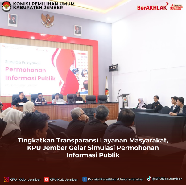 Jember, kab-jember.kpu.go.id – Dalam rangka mengoptimalkan mutu layanan dan mewujudkan keterbukaan informasi, Komisi Pemilihan Umum (KPU) Kabupaten Jember menyelenggarakan kegiatan Simulasi Pelayanan Permohonan Informasi Publik. Kegiatan edukatif ini dilaksanakan secara terpusat di Aula KPU Kabupaten Jember pada hari Rabu, 04 Maret 2026, dan dimulai tepat pada pukul 10.00 WIB. Berdasarkan surat undangan resmi bernomor 25/TU.01.1-Und/3509/2026 , acara ini diwajibkan bagi seluruh elemen lembaga, yang meliputi Anggota KPU , Sekretaris , jajaran Kasubbag, serta seluruh pegawai KPU Jember. Inisiatif penyelenggaraan simulasi ini merupakan langkah konkret untuk menindaklanjuti hasil keputusan Rapat Pleno yang telah diselenggarakan pada tanggal 02 Maret 2026. Tujuan utamanya adalah untuk memastikan Standar Operasional Prosedur (SOP) terkait pelayanan informasi dapat berjalan secara efektif, efisien, dan selaras dengan prinsip transparansi. Ketua KPU Kabupaten Jember, Dessi Anggraeni, dalam sambutannya menekankan pentingnya kesiapan aparatur dalam memfasilitasi kebutuhan masyarakat. "Kami menaruh harapan besar agar melalui simulasi ini, seluruh pegawai KPU Jember mampu mengimplementasikan prosedur layanan permohonan informasi publik dengan benar dan sangat responsif," tegas Dessi. Ia juga menambahkan bahwa peningkatan kapasitas ini akan berdampak langsung pada akselerasi layanan yang sesuai dengan regulasi. Adapun proses pelaksanaan simulasi tersebut dipandu langsung oleh Kasubbag Partisipasi Hubungan Masyarakat dan SDM, Siti Nur Indah, yang bertindak sebagai Pejabat Pengelola Informasi dan Dokumentasi (PPID). Selama kegiatan berlangsung, tim memperagakan secara detail alur penanganan pemohon, mulai dari tata cara penerimaan permintaan, proses verifikasi kelengkapan dokumen pendukung, hingga tahap akhir pendistribusian data kepada masyarakat. Melalui pendekatan praktik yang intensif ini, KPU Kabupaten Jember optimistis dapat meminimalisasi berbagai kendala teknis di lapangan. Hal ini sekaligus menjadi bukti nyata komitmen lembaga dalam menjaga integritas dan memenuhi hak konstitusional warga negara untuk mengakses informasi. (dwp) ....