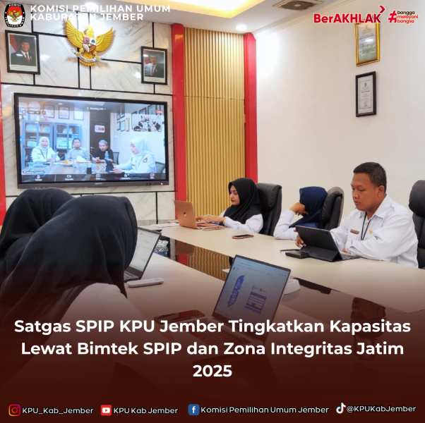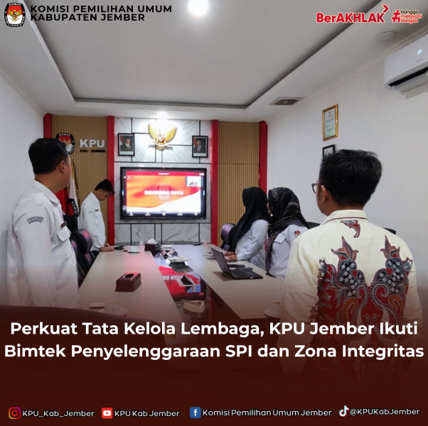 Jember, kab-jember.kpu.go.id – Senin, 03 November 2025. Satuan Tugas Sistem Pengendalian Intern Pemerintah (Satgas SPIP) KPU Jember telah melaksanakan koordinasi dan integrasi sebagai bagian dari penyelenggaraan SPIP melalui partisipasi aktif dalam Bimbingan Teknis (Bimtek) Penyelenggaraan SPIP dan Pembangunan Zona Integritas (ZI). Kegiatan ini diselenggarakan oleh KPU Provinsi Jawa Timur secara daring pada Senin, 3 November 2025, dan melibatkan seluruh anggota Satgas SPIP dari KPU Kabupaten/Kota se-Jawa Timur, termasuk perwakilan dari KPU Jember. Bimtek ini membahas secara mendalam Pedoman Teknis Penyelenggaraan SPIP sesuai Keputusan KPU Nomor 855 Tahun 2025, serta strategi percepatan pembangunan Zona Integritas di lingkungan KPU. Selain memperkuat pemahaman teknis, kegiatan ini juga menekankan pentingnya komitmen pimpinan dan seluruh jajaran dalam membangun budaya pengendalian intern yang kuat dan berintegritas. KPU Jember, yang baru saja menetapkan perubahan Satgas SPIP melalui Keputusan Nomor 47 Tahun 2025, menggunakan momentum ini untuk meningkatkan kapasitas teknis para anggota Satgas dalam menjalankan fungsi pengendalian intern serta mendukung langkah-langkah strategis pembangunan Zona Integritas. Diharapkan dengan penerapan SPIP yang optimal dan pembangunan ZI yang efektif, penyelenggaraan Pemilu di Kabupaten Jember akan semakin akuntabel dan berkualitas. Bimtek ini juga menekankan bahwa SPIP harus menjadi budaya kerja yang menjunjung integritas dan akuntabilitas, bukan sekadar rutinitas administrasi. Langkah-langkah strategis dalam pembangunan Zona Integritas, termasuk pembentukan tim ZI dan mekanisme monitoring, menjadi bagian penting dari upaya memperkuat tata kelola pemerintahan di KPU. Melalui koordinasi dan integrasi antar Satgas SPIP di seluruh KPU Kabupaten/Kota se-Jawa Timur, KPU Jember berkomitmen untuk menjalankan sistem pengendalian intern yang efektif sebagai modal utama dalam mendukung transparansi, akuntabilitas, dan peningkatan kualitas penyelenggaraan Pemilu secara keseluruhan di daerahnya. (dwp)