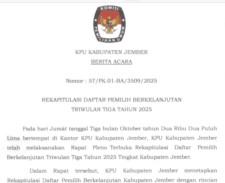 BERITA ACARA REKAPITULASI PEMUTAKHIRAN DATA PEMILIH BERKELANJUTAN TRIWULAN III TAHUN 2025
