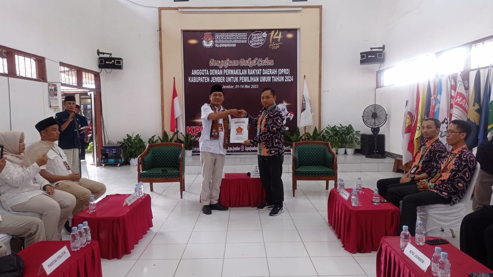 Jember - Partai Gerakan Indonesia Raya (Gerindra) mendaftarkan seluruh Bakal Calon Legislatifnya (Bacaleg) yakni 50 orang ke Komisi Pemilihan Umum (KPU) Kabupaten Jember, Sabtu 13 Mei 2023. Kedatangan Delegasi PKS di kantor KPU Jember pada pukul 13.59 WIB, disambut langsung oleh ketua dan anggota KPU Kabupaten Jember bersama PLT Sekertaris serta jajaran Ka Subbag seketariat KPU Kabupaten Jember Dalam sambutannya saat prosesi pendaftaran Bacaleg di ruang aula KPU, Ketua DPC Gerindra Jember, Ahmad Halim mengatakan Dari 50 orang yang mendaftar, tujuh diantaranya merupakan Incumbent. Seperti diketahui, saat ini Partai Gerindra memiliki 7 kursi di DPRD Jember. "Ya dari petahana semuanya 7 orang maju semua ditingkatan dua (DPRD Jember). Tentu ada tambahan calon legislatif sebanyak 43 tambahan baru," kata Ketua PDC Partai Gerindra Jember, Ahmad Halim. Menurutnya, Bacaleg Gerindra terdiri dari berbagai macam kalangan. Bahkan, kata Halim, semua Bacaleg memiliki potensi untuk meraih suara sebanyak-banyaknya. "Ada beberapa (Bacaleg Gerindra) dari tokoh masyarakat, kalangan milenial, kemudian ada beberapa representasi pondok pesantren, ya kita adopsi semua lah. Semua yang berpotensi, bisa menjadi gathering voter (mengumpulkan pemilih) bagi Partai Gerindra, ya kita akomodir," jelas Halim. Sementara itu ketua KPU Jember, Muhammad Syai'in mengatakan bahwa KPU sebagai lembaga layanan siap untuk memberikan layanan terhadap partai manapun yang akan mendaftarkan bacalegnya untuk mengikuti pileg 2024 "KPU selelu siap melayani siapapun partai yang datang ke KPU akan kami perlakukan sama dan tanpa membeda-bedakan" jelasnya Sedangkan untuk tahapan pendaftaran calon ini, Partai Politik diharapkan untuk memastikan kembali data silonnya jangan sampai ada kesalahan.