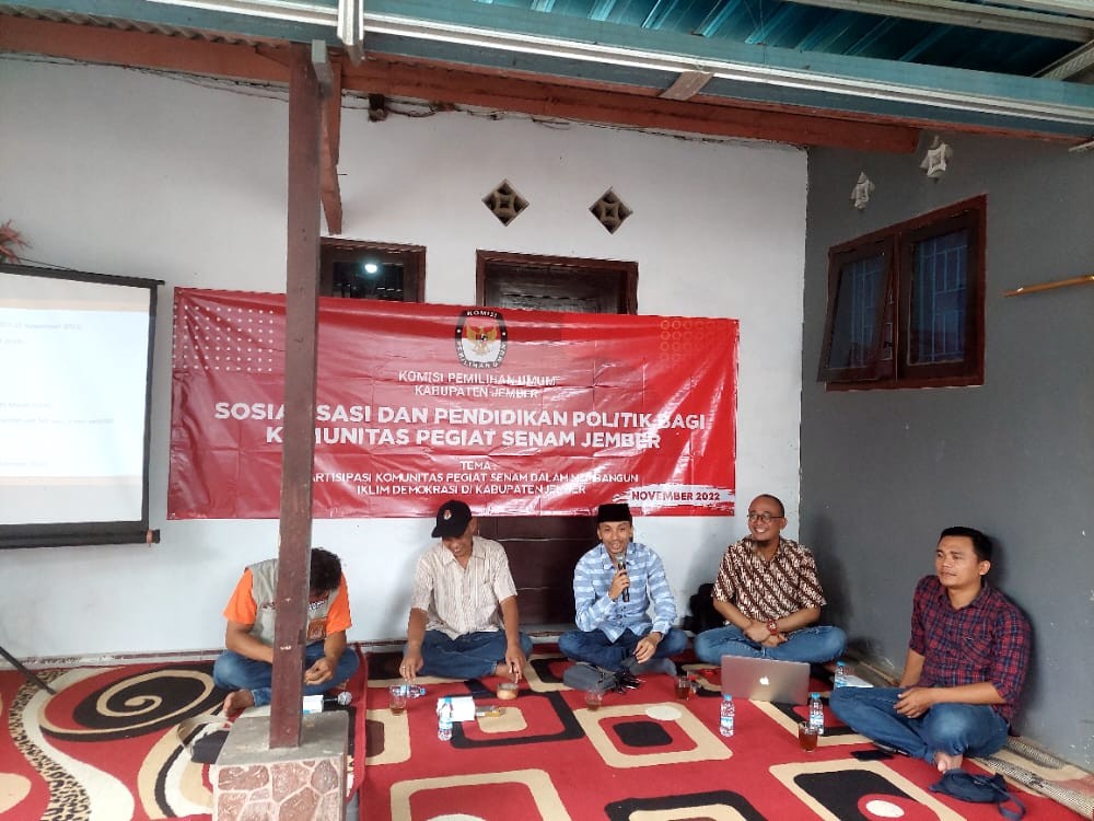 Jember-09 November 2022, Menyikapi banyaknya pemilih pemula di Kab Jember dalam pemilu yang akan mendatang, Komisi Pemilihan Umum (KPU) Kab jember melakukan beberapa terobosan agar mereka menggunakan hak pilihnya secara benar. Sosialisasi memberikan dua kontribusi fundamental bagi kehidupan kita. Pertama, memberikan dasar atau fondasi kepada individu bagi terciptanya partisipasi yang efektif dalam masyarakat, dan kedua memungkinkan lestarinya suatu masyarakat, karena tanpa sosialisasi akan hanya ada satu generasi saja sehingga kelestarian masyarakat akan sangat terganggu. Sosialisasi tersebut dibuka oleh Anggota KpU Jember Achmad Susanto selaku anggota KPU div.teknis penyelenggara. Dalam sambutannnya Susanto mengajak pemilih pemula agar bisa menggunakan hak pilihnya pada pemilu 2024 dengan cara yg cerdas, „“jadilah pemilih yang cerdas,agar pilihan kita bisa menjdi leninismo yang amanah,“tegasnya Secara teknis pendidikan politik disampaikan oleh Narasumber dari akademisi dosesn uneversitas Muhammadiyah Suryono dengan memberikan pemahaman tentang etika dan budaya politik sebagaimana mencerminkan etika budaya yang baik dan positif dalam kehidupan sehari-hari, kehidupan Bentuk kegiatan yang dilaksanakan adalah dengan metode penyampaian materi dan diisi dengan dialog atau diskusi.