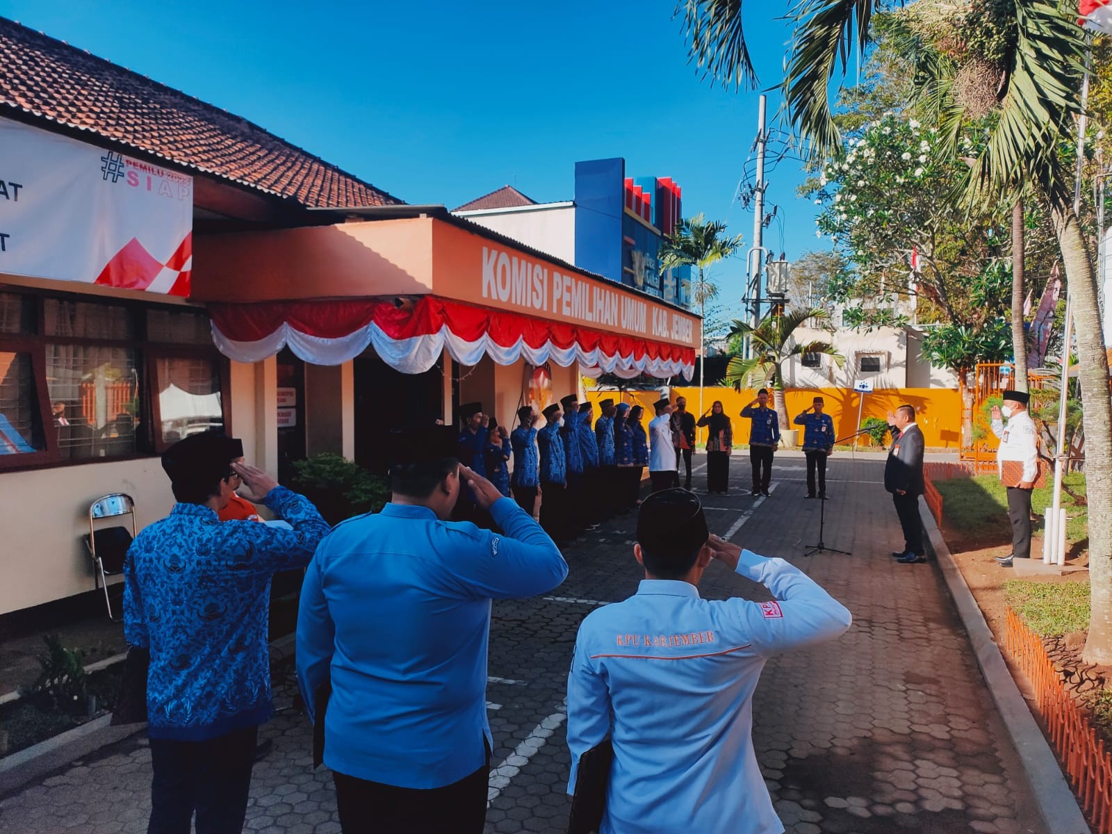 Jember, - Dalam Rangka memperingati Hari Kemerdekaan Indonesi yang ke 77, Komisi Pemilihan Umum (KPU) Kabupaten Jember melaksanakan Upacara bendera di halaman kantor KPU Jember, Rabbu (17/08/22)