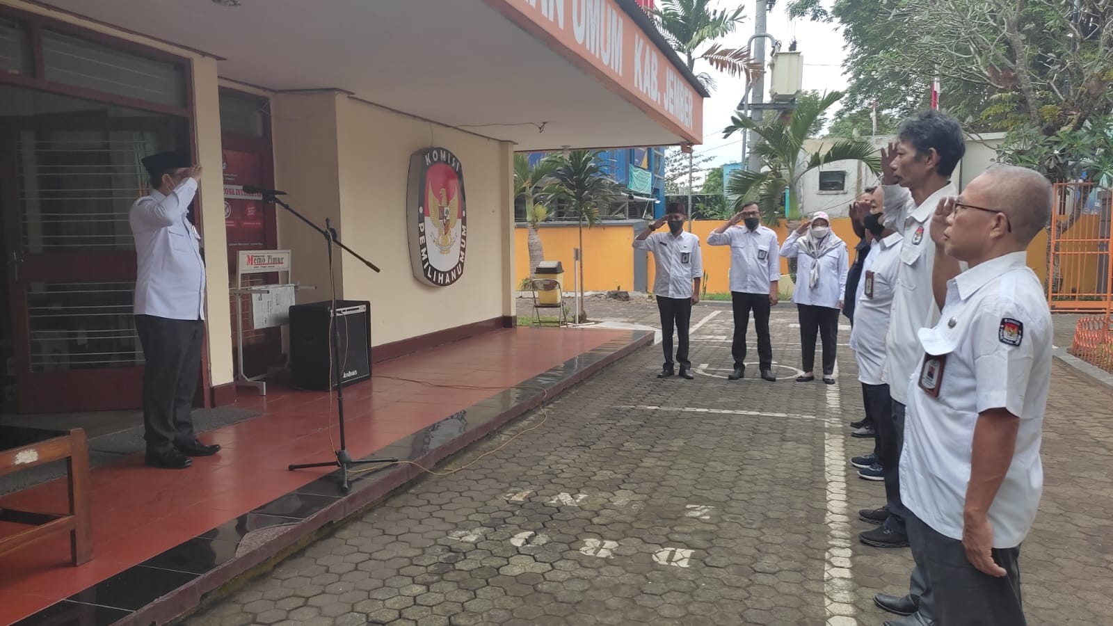 Komisi Pemilihan Umum (KPU) Kabupaten Jember, mengikuti bimbingan teknis (Bimtek) pengenalan Sistem Informasi Partai Politik (Sipol) difasilitasi KPU RI secara virtual, Rabu (5/7/2022). Sipol merupakan alat bantu KPU dengan partai politik calon peserta Pemilu 2024, dalam tahapan pendaftaran dan verifikasi partai politik.